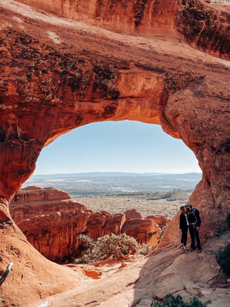 I highly recommend purchasing a hiking pack with a water reservoir for Arches National Park. I drank over 4 liters of water a day even when we did short 3-mile hikes. The dry climate and long, hot days can quickly dehydrate you and it’s best to be prepared. Thankfully, the park provides several filtered water stations, so you don’t need to invest in gallons of water for your trip. I say this in every hiking blog, but a friendly reminder to pack layers. It dropped below 40-degrees at night and soared above 80-degrees during the day.