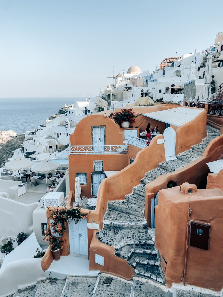 Visiting Oia during sunrise was breathtaking. The streets are mostly empty and you won’t find yourself shoulder-to-shoulder with tourists. Hotels and airbnbs provide breakfast as most restaurants are closed at this time so after enjoying your meal stroll through the peaceful, uninterrupted streets of Oia. There are also the famous steps from West Oia to Amouldi Bay that lead you to sea food restaurants and a fun place for cliff jumping into the water.
